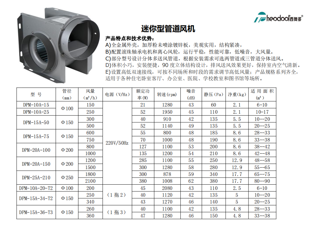 西奥多迷你型管道风机